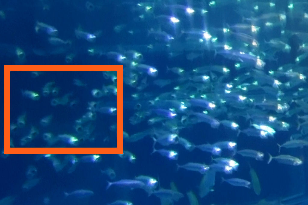 ちょっと拡大してみると、魚の顔がキラキラしているのがわかります。