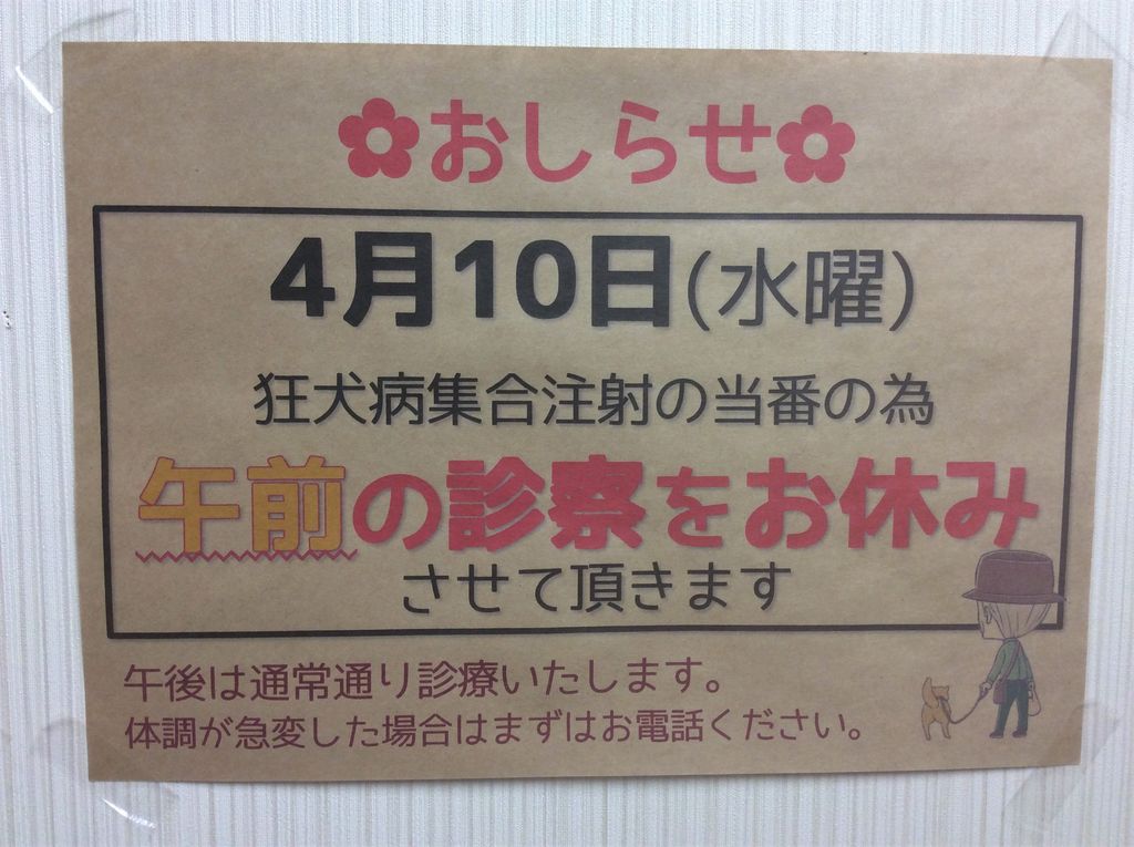 明日、4月10日(水曜日)午前診察はお休みです。