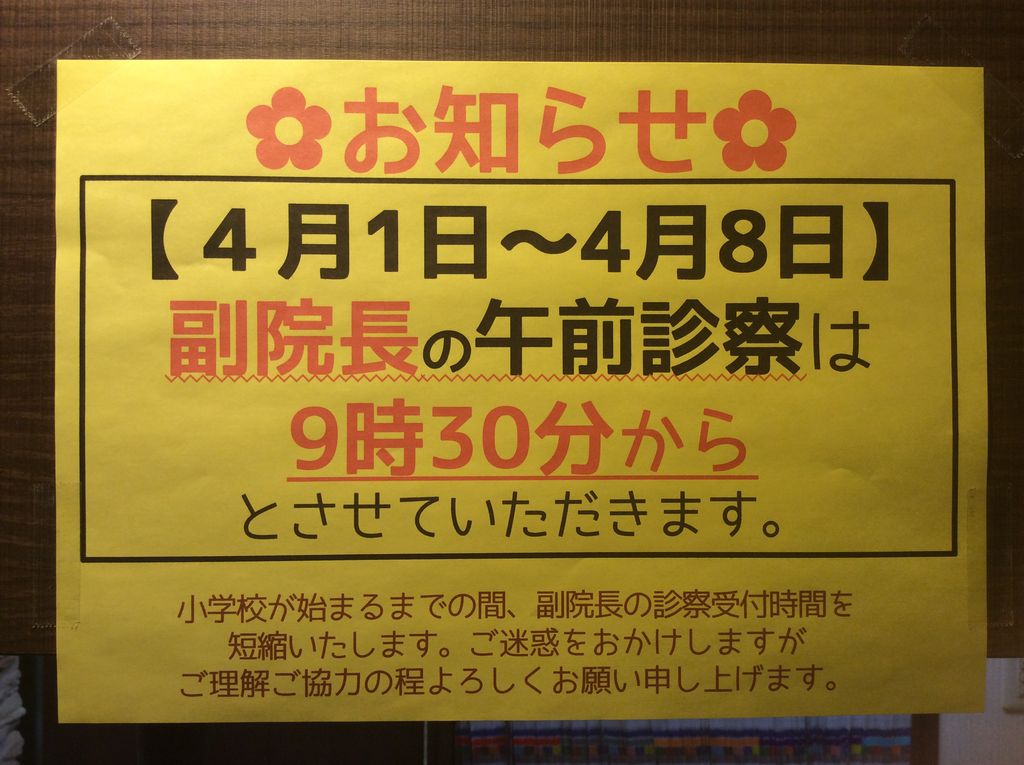 副院長の診察時間はチョイチョイ不規則になると思います。