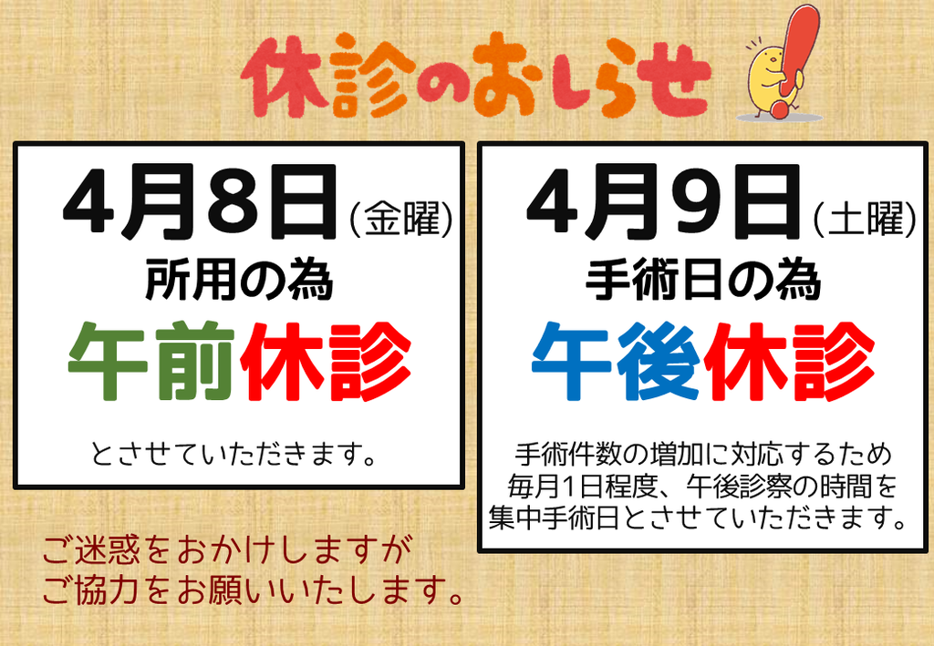 副院長が午後診察をお休みいただく月曜日と木曜日は