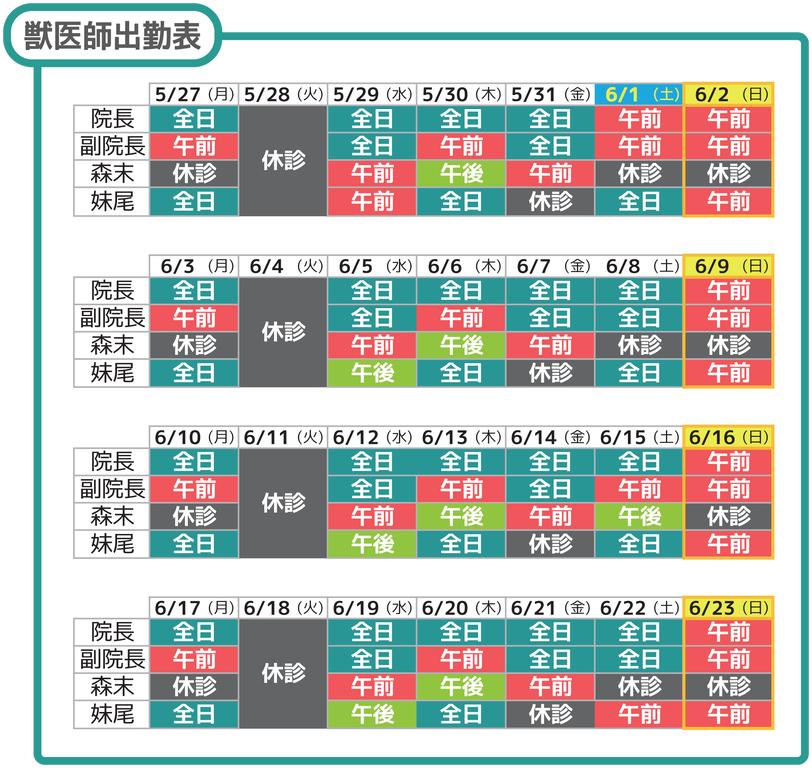 明日は獣医師2名での診察となりますので、通常よりも待ち時間が長くなります。