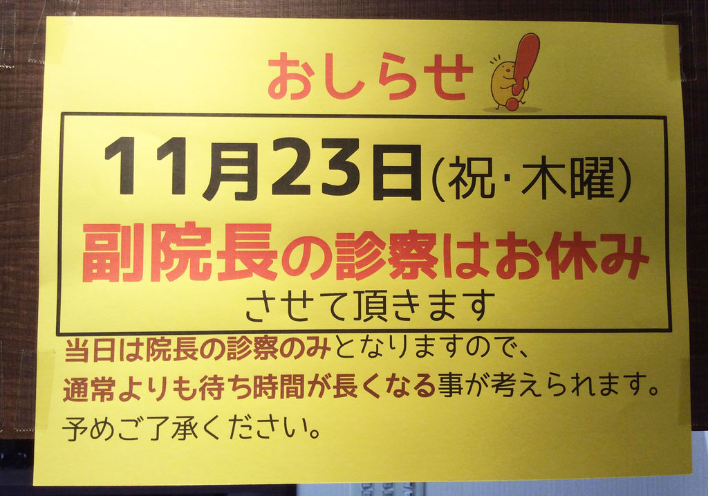 副院長は午後の診察をお休みさせていただきます。